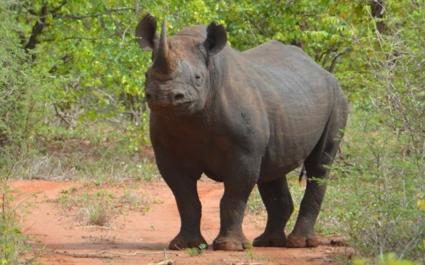 Black rhino interfering with pond sampling in Zimbabwe