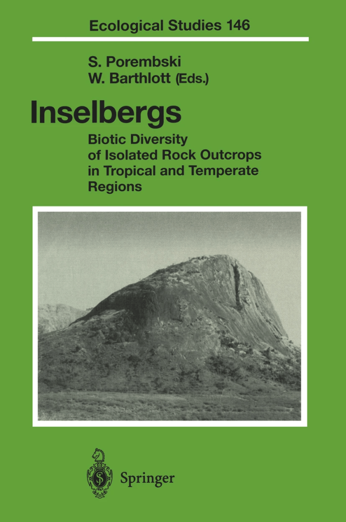 Since the start of my PhD in 2006, I’ve spent several years of my life walking on inselbergs (i.e. ancient isolated mountains with modest topography) mainly in Africa and Australia, studying the organisms that live there. It was an inspiring and productive endeavor, leading to a lot of published case studies. Yet, some broader insights take time to develop. I believe it’s only when you spend enough time working on a system and after endless discussions with local experts that deeper understanding emerges. In 2017, a meeting was arranged at the University of Rostock, home of Stefan Porembski, arguably the most influential inselberg researcher alive today. As a PhD student I eagerly read and re-read his landmark green book on Inselbergs.